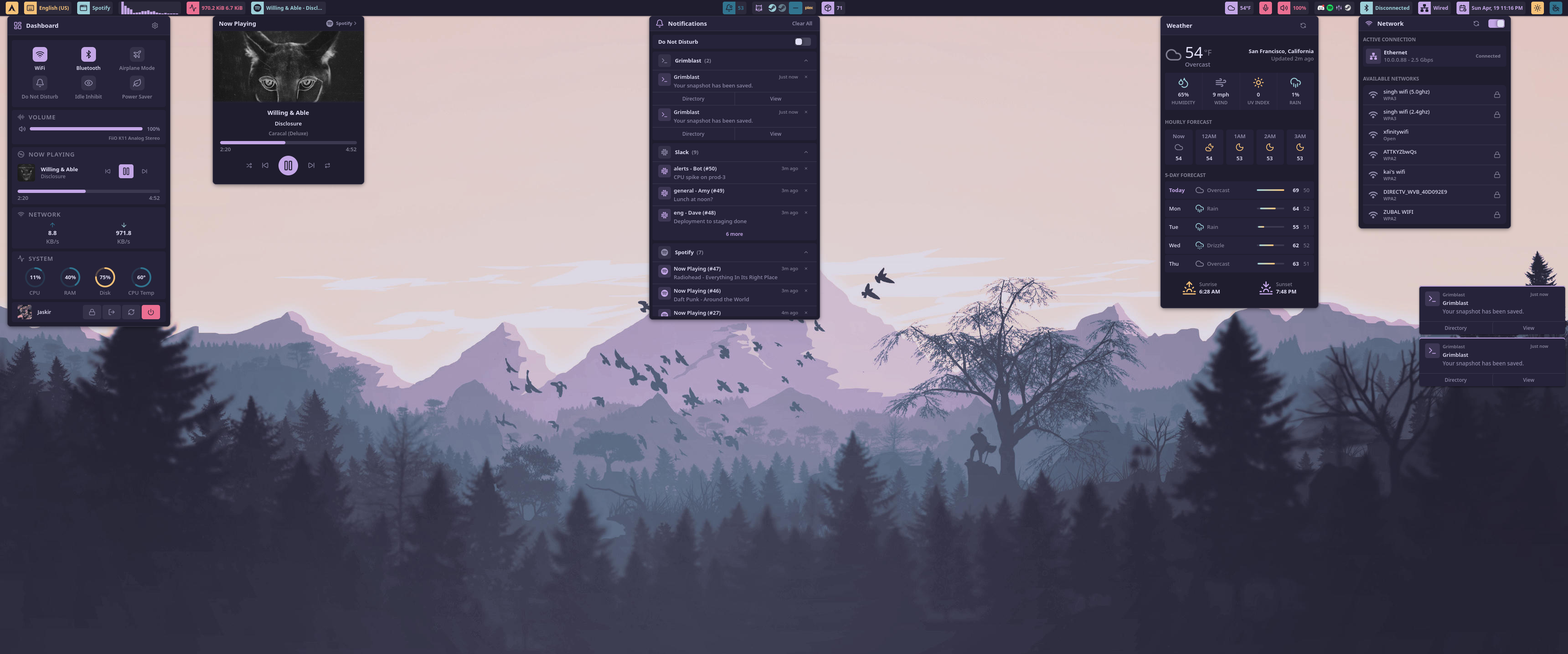 Wayle is a Wayland desktop shell written in Rust with GTK4 and Relm4. It provides a top bar, notification center, on-screen display, wallpaper management and much more. Built-in mechanisms to handle audio, Bluetooth, network, media, battery and power controls.